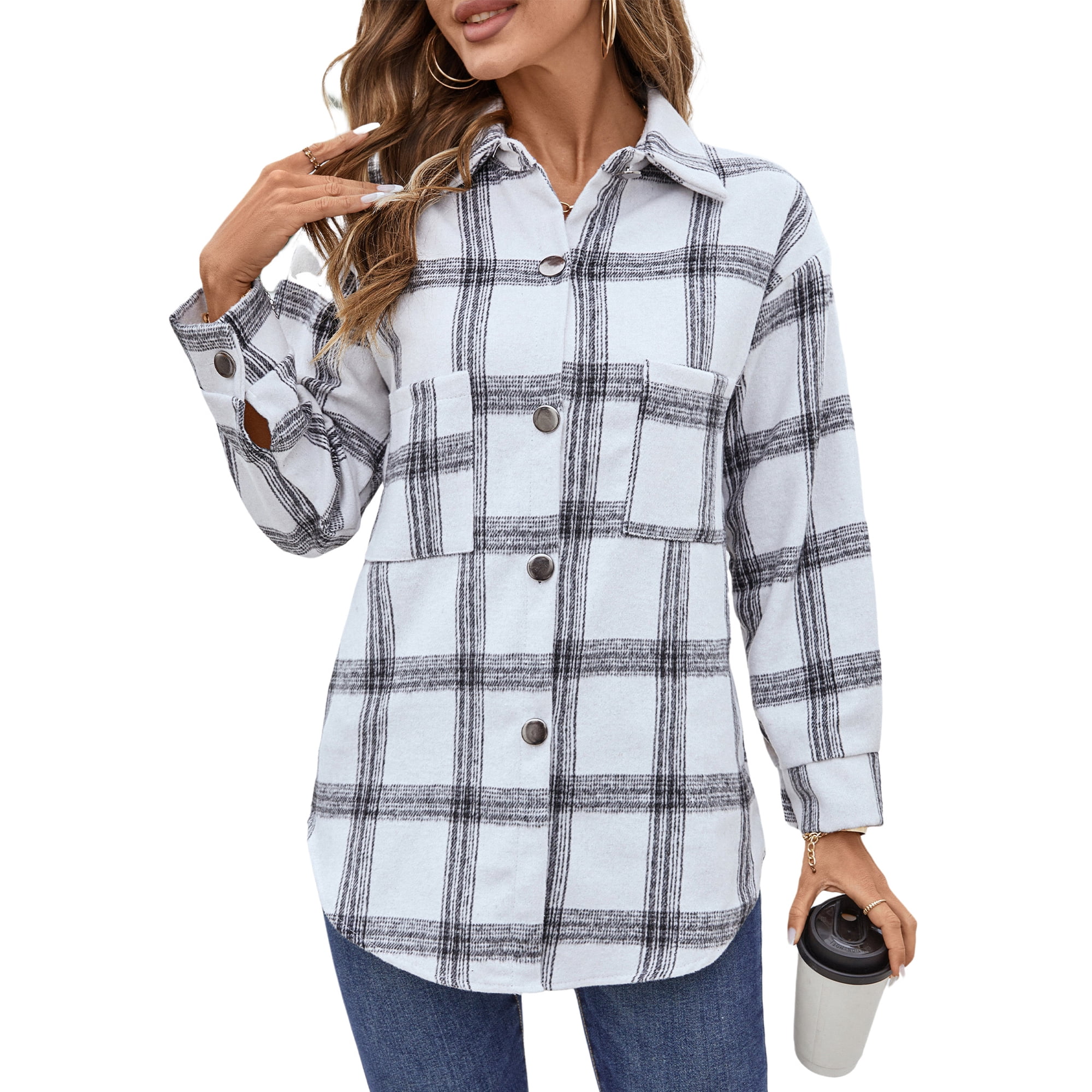 - ❤ 【Match】: This plaid shirts flannel shacket Jacket is perfect for layering or on its own. It’s a stylish statement piece when paired with jeans, leggings, pencil skirt or slacks for a dressed up/dressed down look.