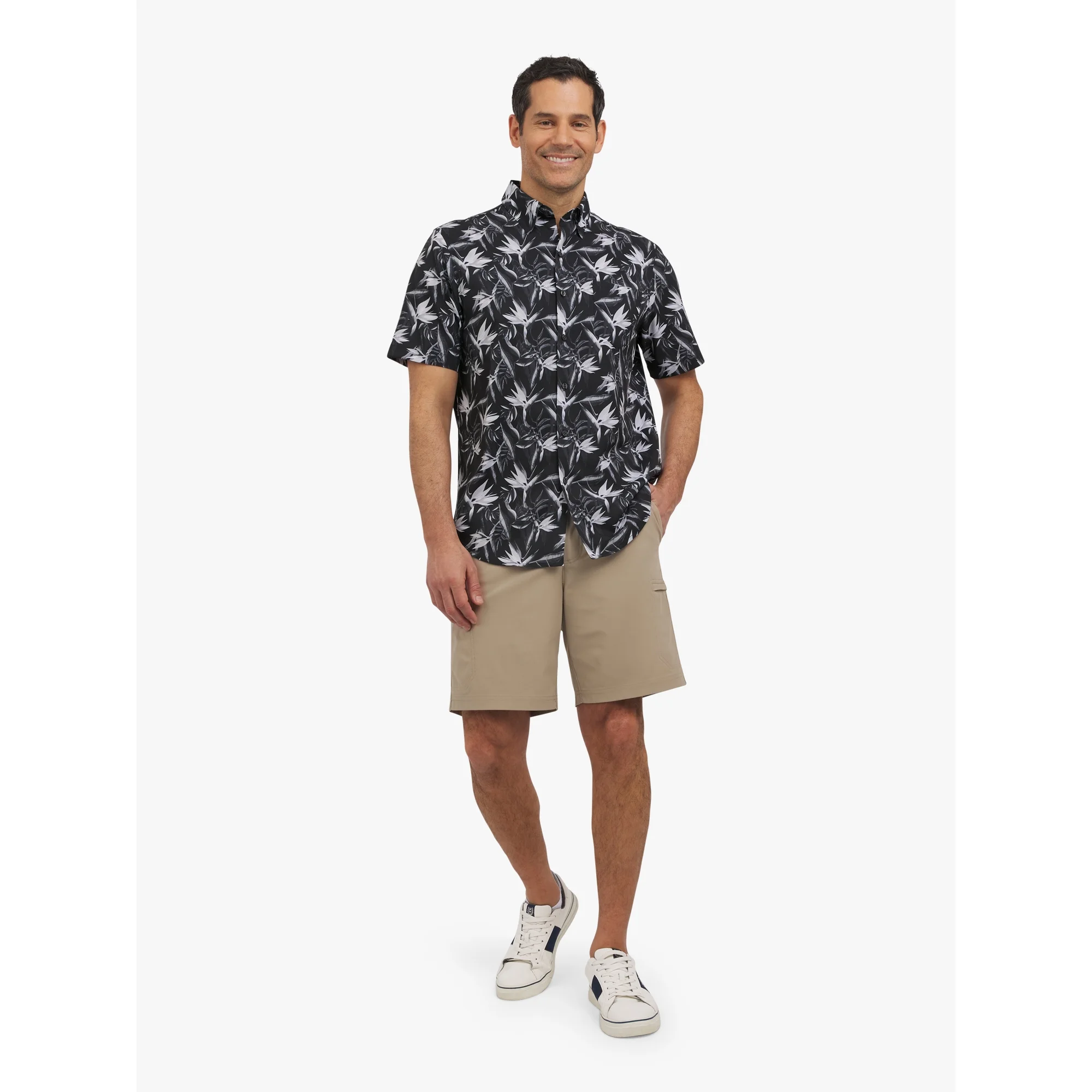 The Men’s and Big Men’s Short Sleeve Performance Woven Shirt , Sizes S-3XL features UPF 50 fabric, fun prints and a classic silhouette for a look that’s equal parts cool and casual. Designed with an untucked fit, this button-down shirt is an easy throw-on piece to pair with khaki shorts and boat shoes. A great addition to any summer wardrobe, it will take you effortlessly from golf outings to weekend getaways.